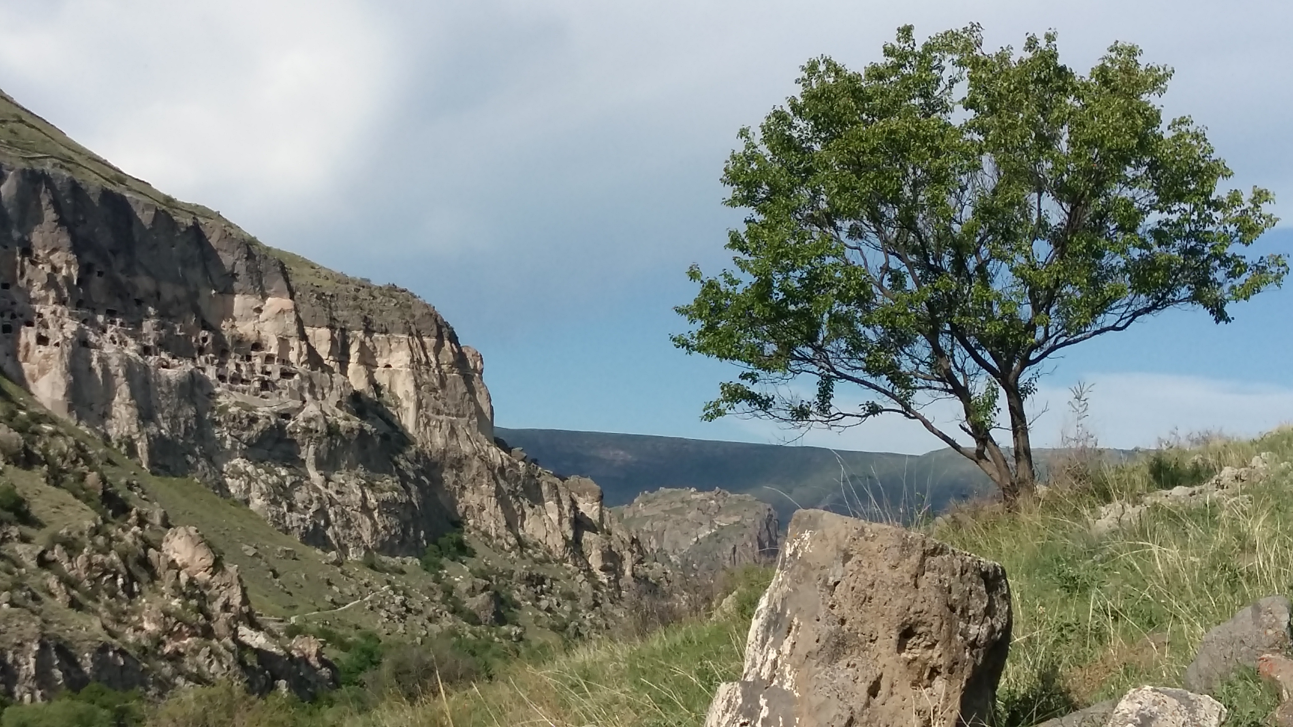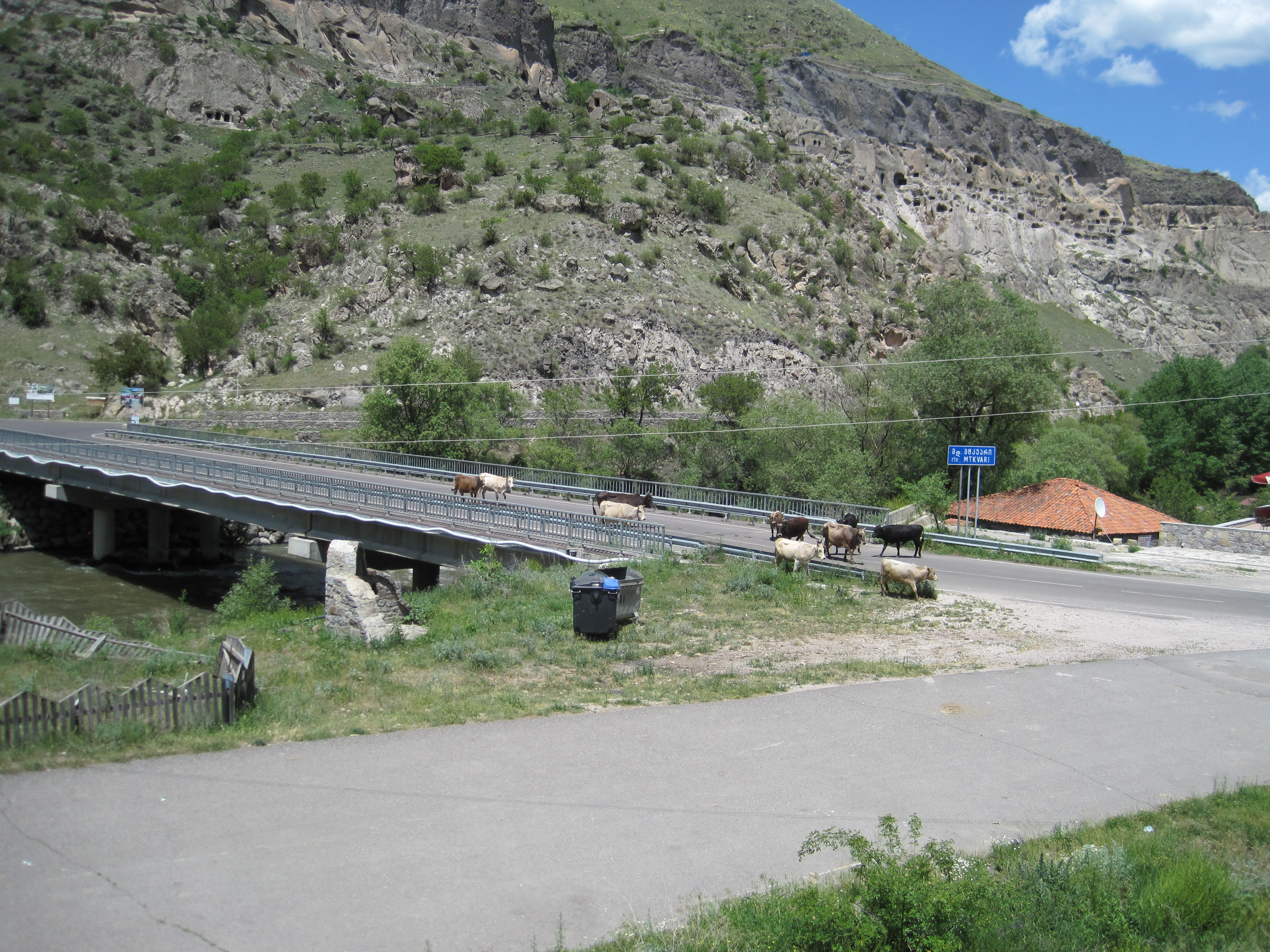 After visiting the medieval cave town of Vardzia, I took myself on a little nature hike in the vicinity of my hotel, just across the river from the site. I had originally considered walking down the road to the smaller cave monastery of Vanis Kvavebi, but after my crazy taxi ride the day before, and having seen a few cars take the bridge over the Mtkvari at full speed and skid sideways into the T-intersection at the end of it, I decided I wasn’t walking anywhere by way of the road.